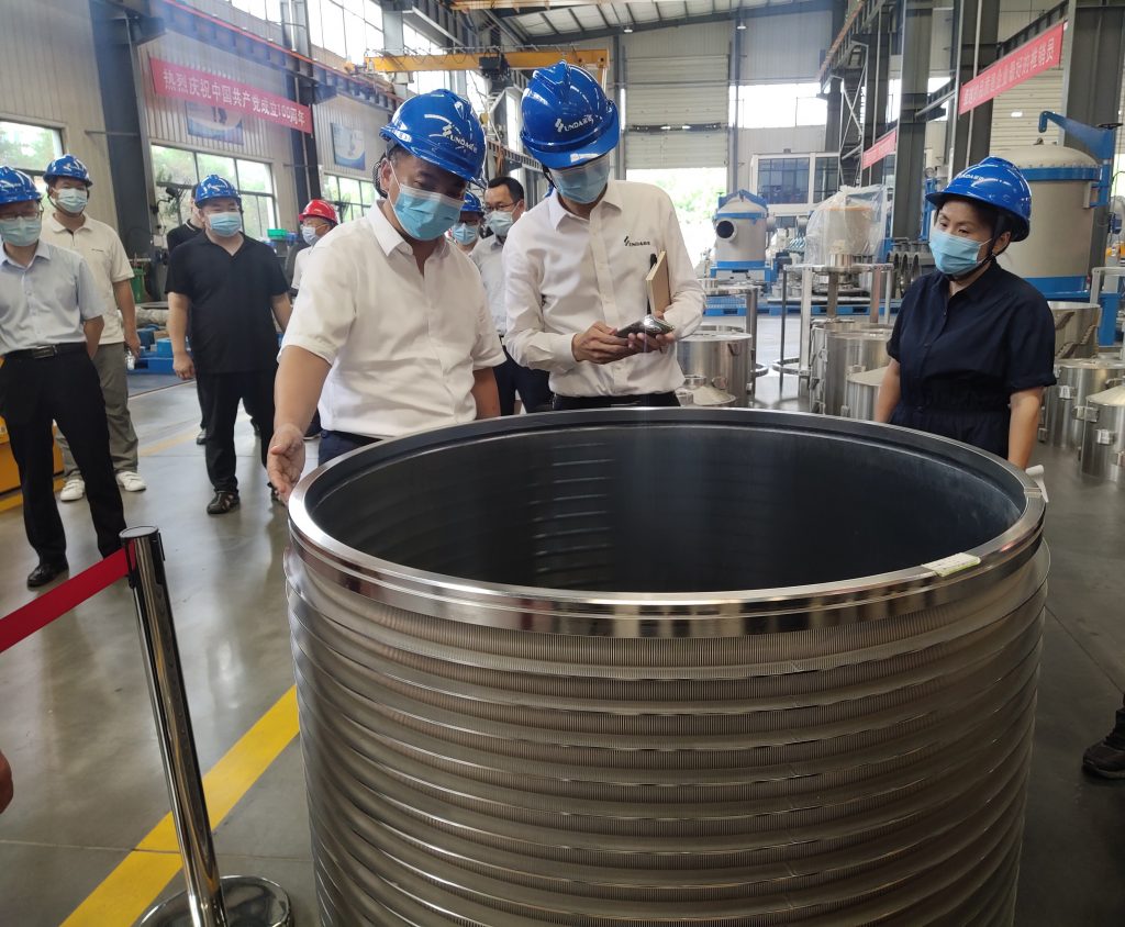 許超峰向馬志峰書記一行詳細(xì)介紹了鄭州運(yùn)達(dá)主打產(chǎn)品鼓式碎漿機(jī)、壓力篩、篩鼓、高濃磨等關(guān)鍵制漿設(shè)備以及相關(guān)產(chǎn)品專利的申報(bào)情況。馬志峰書記對(duì)鄭州運(yùn)達(dá)的產(chǎn)品予以肯定,并向許超峰詳細(xì)詢問了鄭州運(yùn)達(dá)新技術(shù)的推廣應(yīng)用情況。