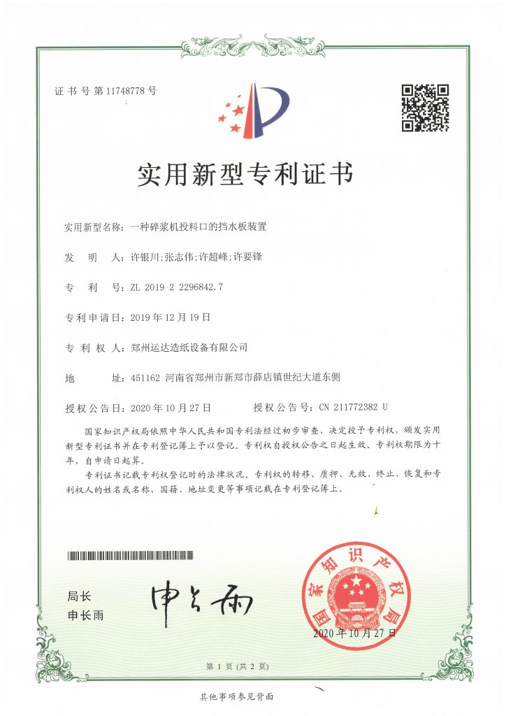 查看證書>>一種碎漿機(jī)投料口的擋水板裝置ZL201922296842.7