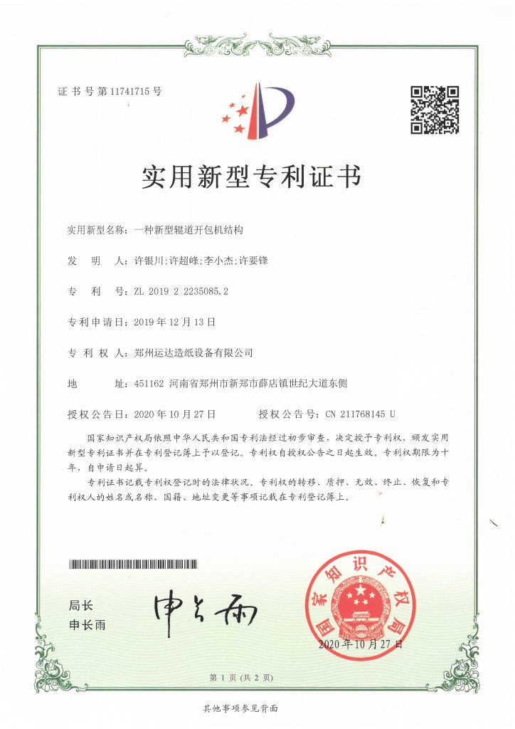 查看證書>>一種新型輥道開包機(jī)結(jié)構(gòu)ZL201922235085.2