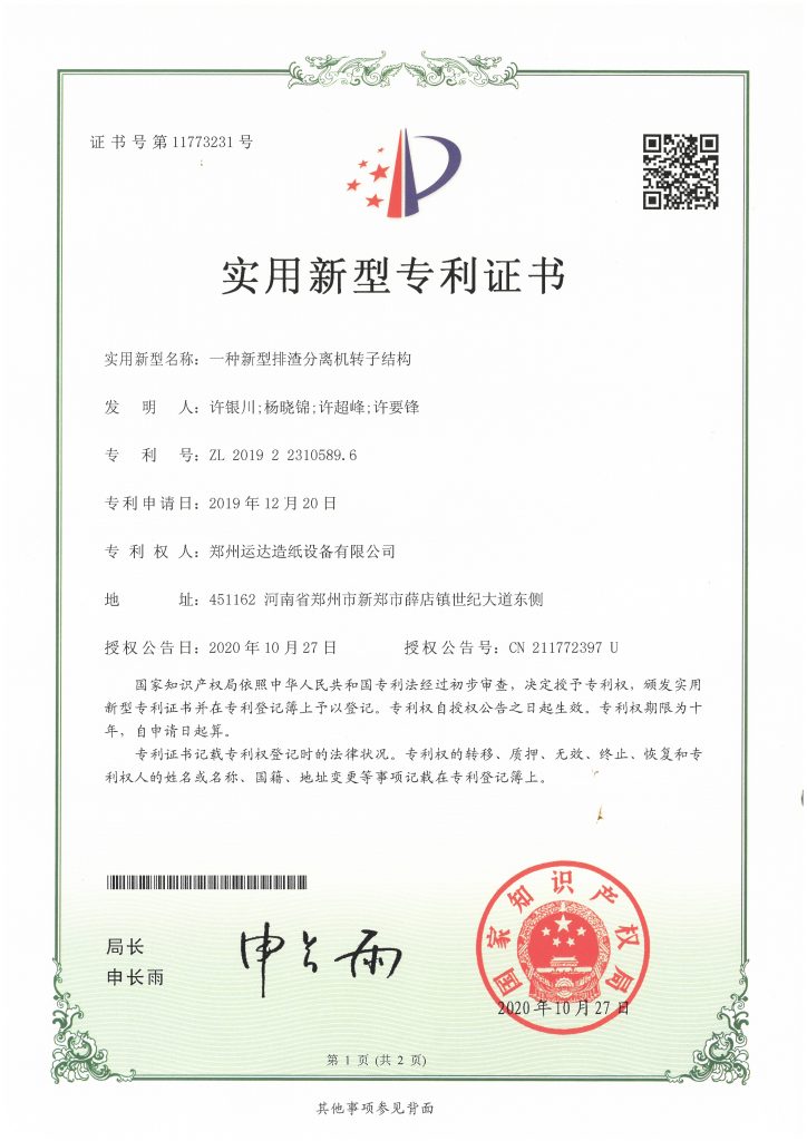 查看證書>>一種高濃水力碎漿機(jī)ZL201922231668.8