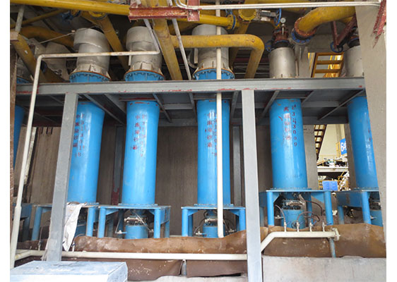 該設備合理設計了上部進料三通和出漿管,分離錐體長,可在漿料濃度較高的情況下獲得良好的分離除渣效果。