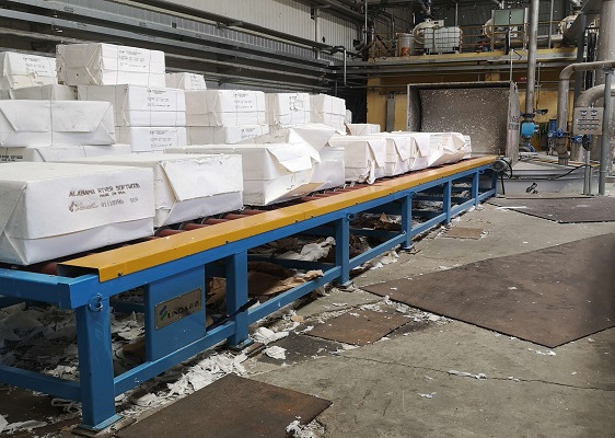 輥道輸送機是適用于木漿包或槳板的上料、剪抽鐵絲的輸送平臺。一般與中濃水力碎漿機和輥道輸送機配套使用,提供一個木漿包除去鐵絲的開放輸送平臺,操作人員在兩邊可以很方便輕松的剪抽切絲,便于后續(xù)的處理。
