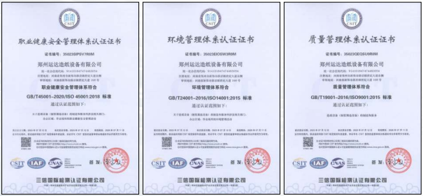 2023年7月12日,“造紙設(shè)備 (制漿篩選設(shè)備) 的制造和服務(wù)”通過質(zhì)量管理體系認(rèn)證;